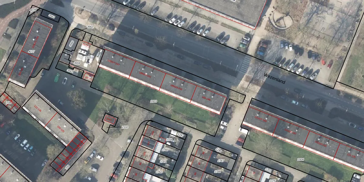 Het perceel waarop Wezenland 203 staat heeft een oppervlakte van 2101 m². Dit is een zeer groot perceel. De perceeloppervlakte wordt geregistreerd door het Kadaster. Gedetailleerde informatie over de maten van dit perceel kunt u vinden in het rapport Kadastrale kaart met maatvoering van Wezenland 203.