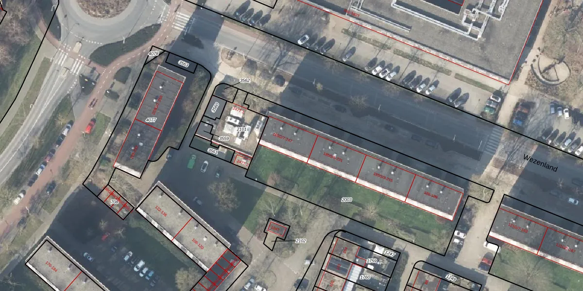 Het perceel waarop Wezenland 237 staat heeft een oppervlakte van 2101 m². Dit is een zeer groot perceel. De perceeloppervlakte wordt geregistreerd door het Kadaster. Gedetailleerde informatie over de maten van dit perceel kunt u vinden in het rapport Kadastrale kaart met maatvoering van Wezenland 237.