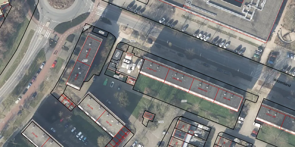 Het perceel waarop Wezenland 241 staat heeft een oppervlakte van 2101 m². Dit is een zeer groot perceel. De perceeloppervlakte wordt geregistreerd door het Kadaster. Gedetailleerde informatie over de maten van dit perceel kunt u vinden in het rapport Kadastrale kaart met maatvoering van Wezenland 241.