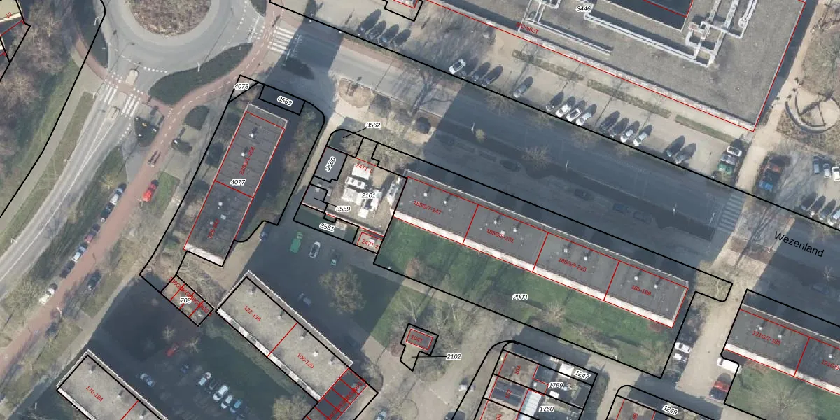 Het perceel waarop Wezenland 243 staat heeft een oppervlakte van 2101 m². Dit is een zeer groot perceel. De perceeloppervlakte wordt geregistreerd door het Kadaster. Gedetailleerde informatie over de maten van dit perceel kunt u vinden in het rapport Kadastrale kaart met maatvoering van Wezenland 243.
