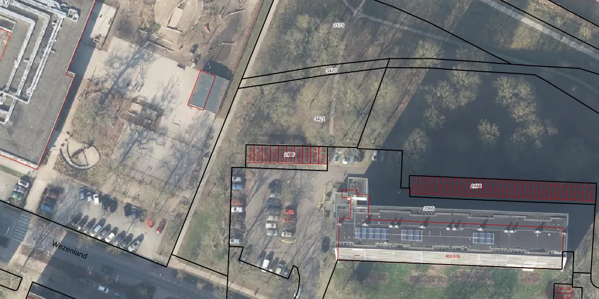 Wezenland 576-G-7 is gelegen op kadastraal perceel DVT00F2466. Deze kadastrale aanduiding is uniek en wordt gebruikt door het Kadaster om eigendomsrechten en andere zakelijke rechten vast te leggen. Het perceel maakt onderdeel uit van de kadastrale gemeente Deventer.