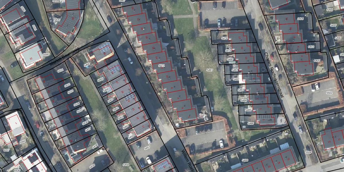 Het perceel waarop Willem Roelofsstraat 8 staat heeft een oppervlakte van 1905 m². Dit is een zeer groot perceel. De perceeloppervlakte wordt geregistreerd door het Kadaster. Gedetailleerde informatie over de maten van dit perceel kunt u vinden in het rapport Kadastrale kaart met maatvoering van Willem Roelofsstraat 8.