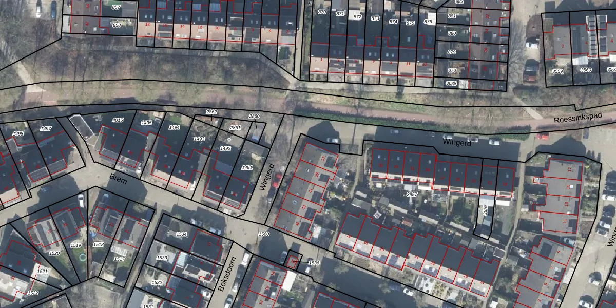 Het perceel waarop Wingerd 37 staat heeft een oppervlakte van 4366 m². Dit is een zeer groot perceel. De perceeloppervlakte wordt geregistreerd door het Kadaster. Gedetailleerde informatie over de maten van dit perceel kunt u vinden in het rapport Kadastrale kaart met maatvoering van Wingerd 37.