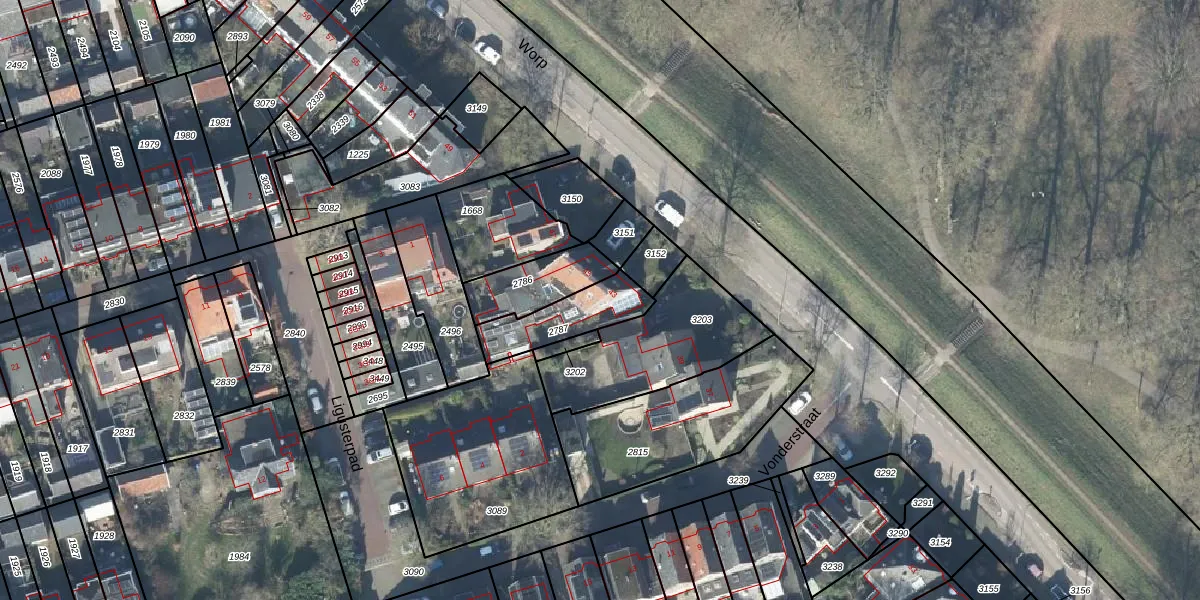 Het perceel waarop Worp 43 staat heeft een oppervlakte van 185 m². Dit is een middelgroot perceel. De perceeloppervlakte wordt geregistreerd door het Kadaster. Gedetailleerde informatie over de maten van dit perceel kunt u vinden in het rapport Kadastrale kaart met maatvoering van Worp 43.