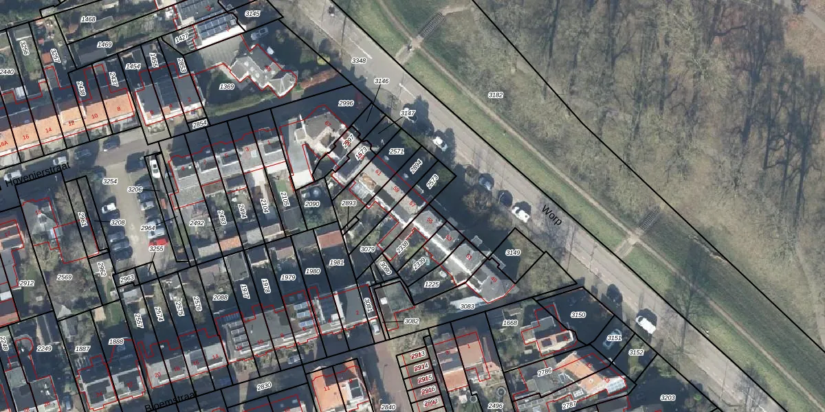 Het perceel waarop Worp 57 staat heeft een oppervlakte van 187 m². Dit is een middelgroot perceel. De perceeloppervlakte wordt geregistreerd door het Kadaster. Gedetailleerde informatie over de maten van dit perceel kunt u vinden in het rapport Kadastrale kaart met maatvoering van Worp 57.