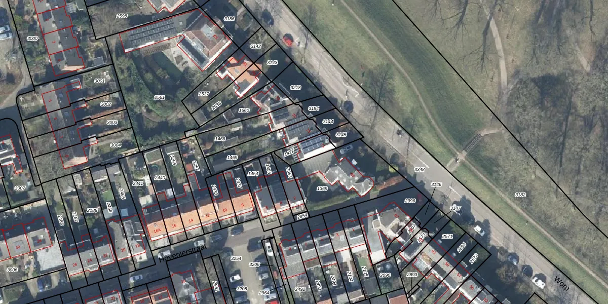Gebruik de zoekbalk of klik op een perceel voor informatie over de adressen binnen dit perceel.