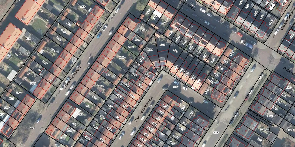 Gebruik de zoekbalk of klik op een perceel voor informatie over de adressen binnen dit perceel.