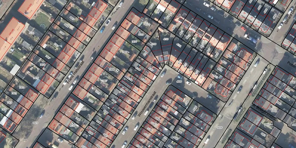 Het perceel waarop Wouwermanstraat 22 staat heeft een oppervlakte van 83 m². Dit is een klein perceel. De perceeloppervlakte wordt geregistreerd door het Kadaster. Gedetailleerde informatie over de maten van dit perceel kunt u vinden in het rapport Kadastrale kaart met maatvoering van Wouwermanstraat 22.