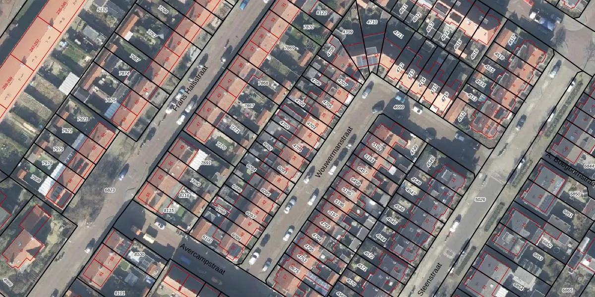 Gebruik de zoekbalk of klik op een perceel voor informatie over de adressen binnen dit perceel.