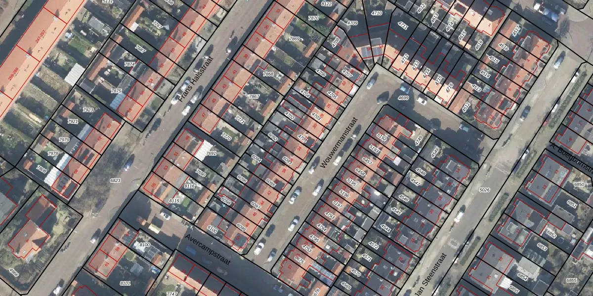 Het perceel waarop Wouwermanstraat 34 staat heeft een oppervlakte van 87 m². Dit is een klein perceel. De perceeloppervlakte wordt geregistreerd door het Kadaster. Gedetailleerde informatie over de maten van dit perceel kunt u vinden in het rapport Kadastrale kaart met maatvoering van Wouwermanstraat 34.