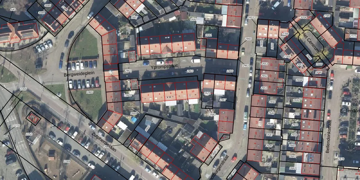 Het perceel waarop Yprompstraat 8 staat heeft een oppervlakte van 3531 m². Dit is een zeer groot perceel. De perceeloppervlakte wordt geregistreerd door het Kadaster. Gedetailleerde informatie over de maten van dit perceel kunt u vinden in het rapport Kadastrale kaart met maatvoering van Yprompstraat 8.