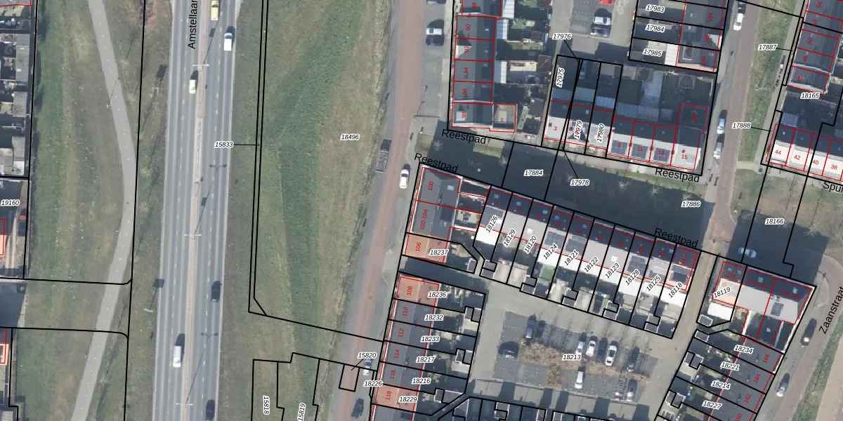 Het perceel waarop Zaanstraat 102 staat heeft een oppervlakte van 2515 m². Dit is een zeer groot perceel. De perceeloppervlakte wordt geregistreerd door het Kadaster. Gedetailleerde informatie over de maten van dit perceel kunt u vinden in het rapport Kadastrale kaart met maatvoering van Zaanstraat 102.