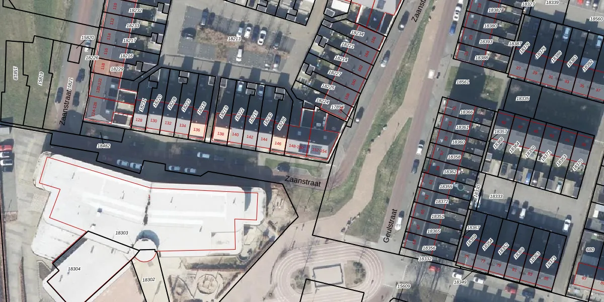 Het perceel waarop Zaanstraat 150 staat heeft een oppervlakte van 2515 m². Dit is een zeer groot perceel. De perceeloppervlakte wordt geregistreerd door het Kadaster. Gedetailleerde informatie over de maten van dit perceel kunt u vinden in het rapport Kadastrale kaart met maatvoering van Zaanstraat 150.