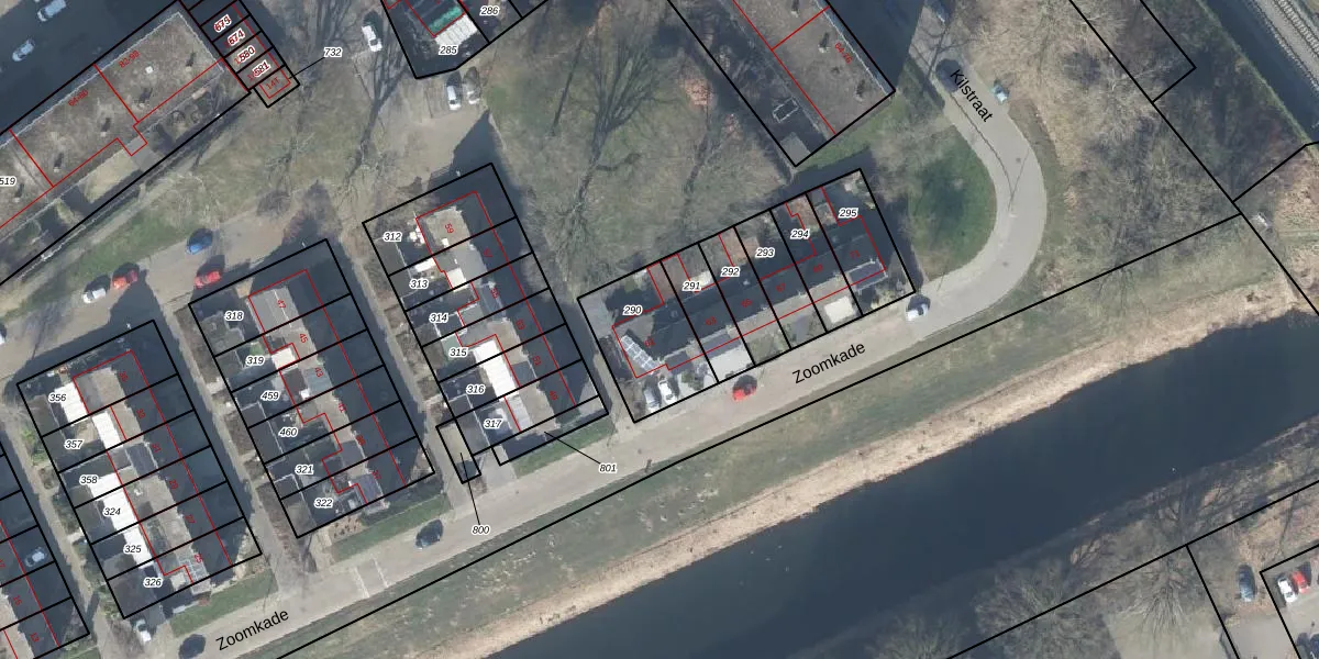 Het perceel waarop Zoomkade 61 staat heeft een oppervlakte van 297 m². Dit is een middelgroot perceel. De perceeloppervlakte wordt geregistreerd door het Kadaster. Gedetailleerde informatie over de maten van dit perceel kunt u vinden in het rapport Kadastrale kaart met maatvoering van Zoomkade 61.