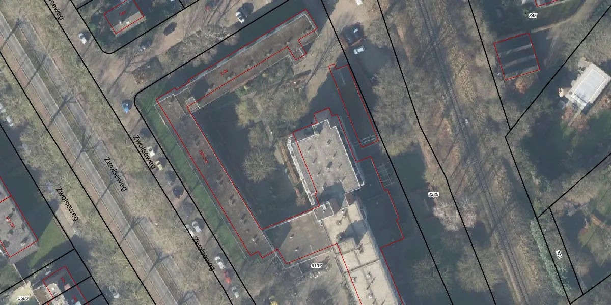 Het perceel waarop Zwolseweg 190-F-5 staat heeft een oppervlakte van 7812 m². Dit is een zeer groot perceel. De perceeloppervlakte wordt geregistreerd door het Kadaster. Gedetailleerde informatie over de maten van dit perceel kunt u vinden in het rapport Kadastrale kaart met maatvoering van Zwolseweg 190-F-5.