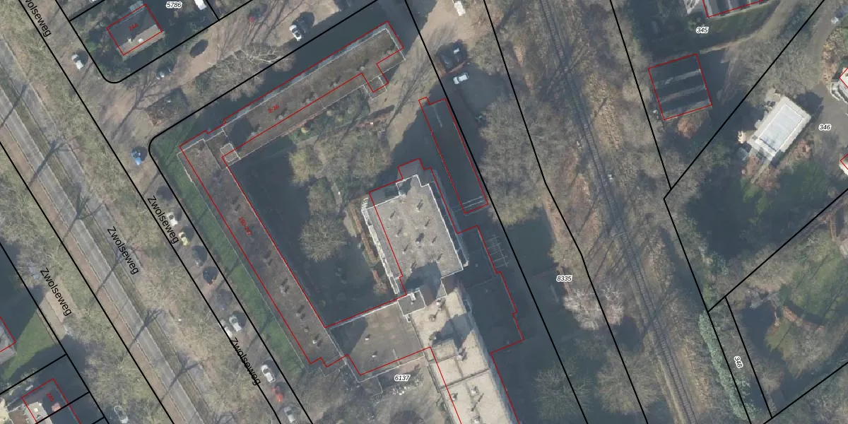 Het perceel waarop Zwolseweg 190-F-73 staat heeft een oppervlakte van 7812 m². Dit is een zeer groot perceel. De perceeloppervlakte wordt geregistreerd door het Kadaster. Gedetailleerde informatie over de maten van dit perceel kunt u vinden in het rapport Kadastrale kaart met maatvoering van Zwolseweg 190-F-73.