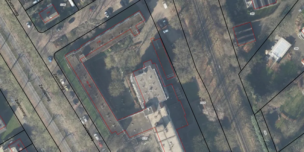 Het perceel waarop Zwolseweg 190-F-72 staat heeft een oppervlakte van 7812 m². Dit is een zeer groot perceel. De perceeloppervlakte wordt geregistreerd door het Kadaster. Gedetailleerde informatie over de maten van dit perceel kunt u vinden in het rapport Kadastrale kaart met maatvoering van Zwolseweg 190-F-72.