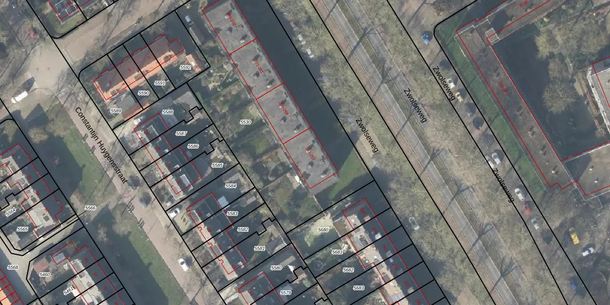 Het perceel waarop Zwolseweg 255 staat heeft een oppervlakte van 2719 m². Dit is een zeer groot perceel. De perceeloppervlakte wordt geregistreerd door het Kadaster. Gedetailleerde informatie over de maten van dit perceel kunt u vinden in het rapport Kadastrale kaart met maatvoering van Zwolseweg 255.