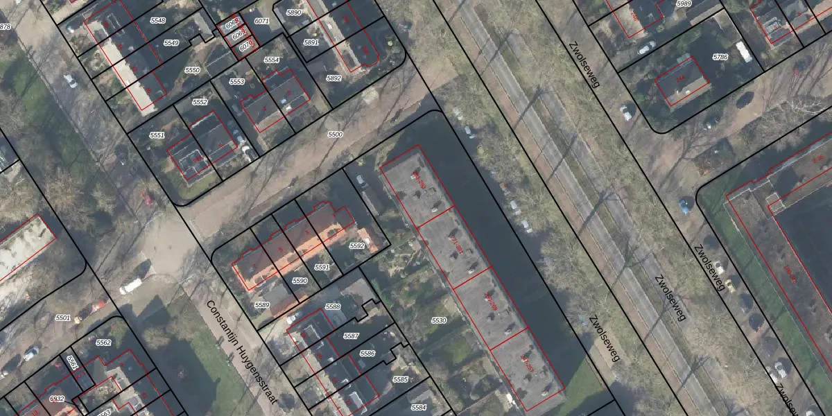 Het perceel waarop Zwolseweg 287 staat heeft een oppervlakte van 2719 m². Dit is een zeer groot perceel. De perceeloppervlakte wordt geregistreerd door het Kadaster. Gedetailleerde informatie over de maten van dit perceel kunt u vinden in het rapport Kadastrale kaart met maatvoering van Zwolseweg 287.