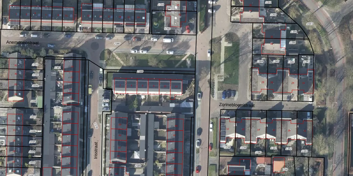 Het perceel waarop Anemonenstraat 12 staat heeft een oppervlakte van 4100 m². Dit is een zeer groot perceel. De perceeloppervlakte wordt geregistreerd door het Kadaster. Gedetailleerde informatie over de maten van dit perceel kunt u vinden in het rapport Kadastrale kaart met maatvoering van Anemonenstraat 12.