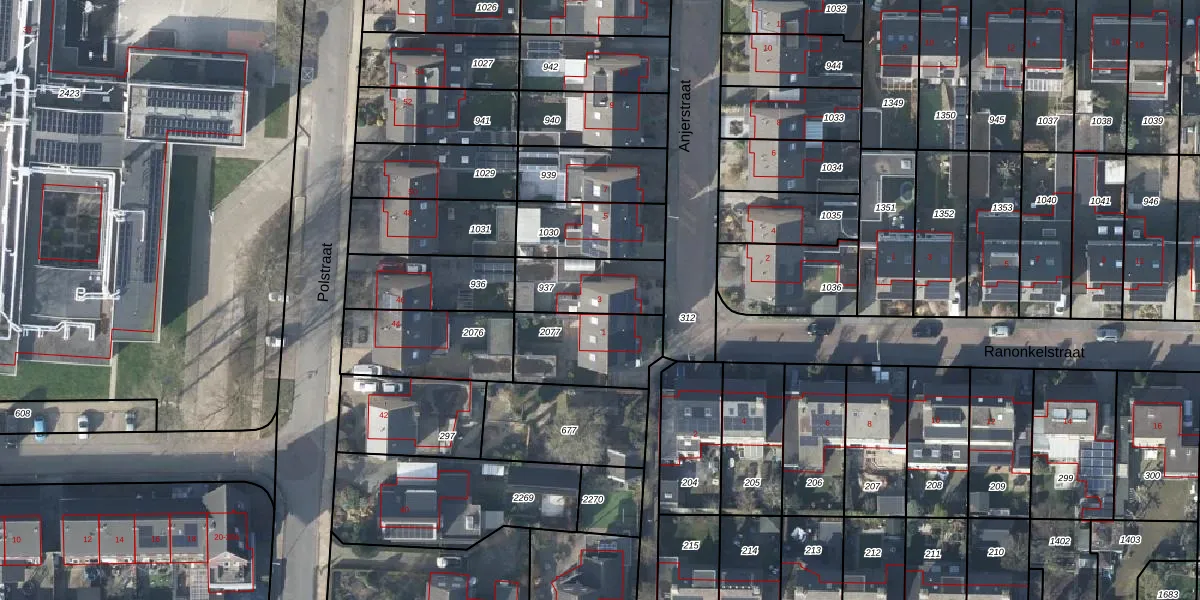 Gebruik de zoekbalk of klik op een perceel voor informatie over de adressen binnen dit perceel.
