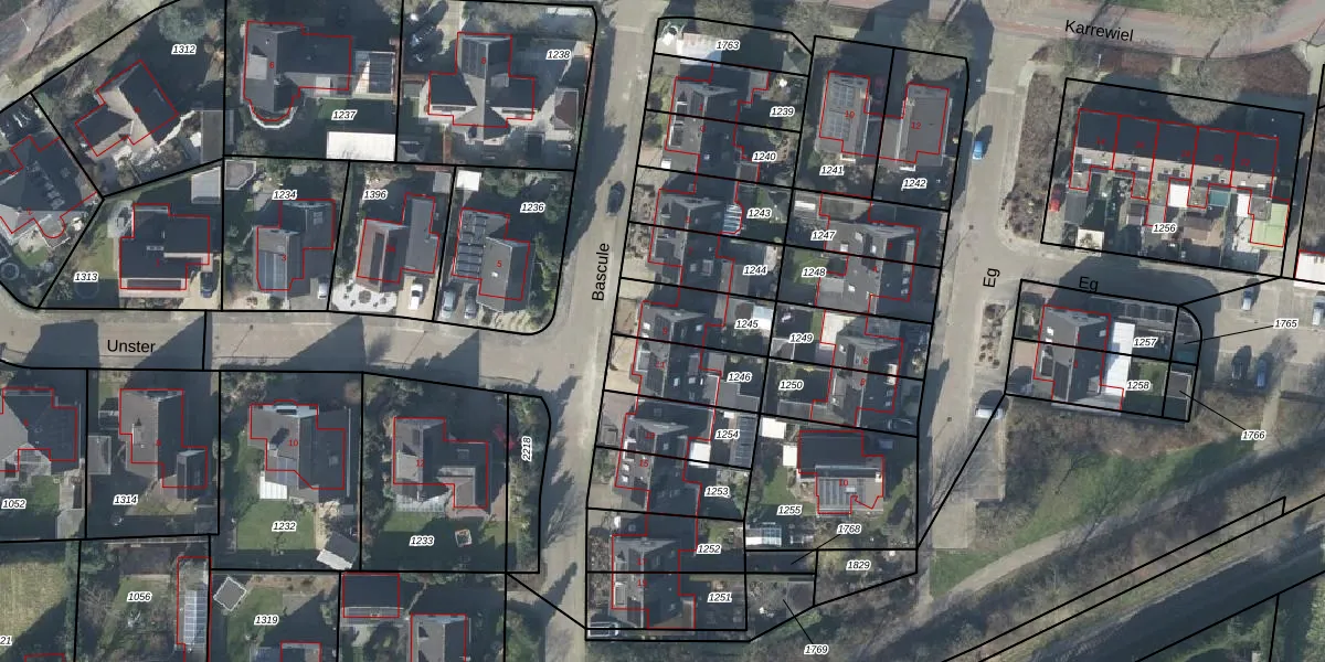 Het perceel waarop Bascule 9 staat heeft een oppervlakte van 205 m². Dit is een middelgroot perceel. De perceeloppervlakte wordt geregistreerd door het Kadaster. Gedetailleerde informatie over de maten van dit perceel kunt u vinden in het rapport Kadastrale kaart met maatvoering van Bascule 9.