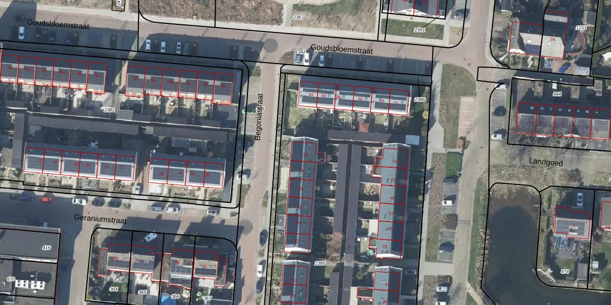 Het perceel waarop Begoniastraat 32 staat heeft een oppervlakte van 7153 m². Dit is een zeer groot perceel. De perceeloppervlakte wordt geregistreerd door het Kadaster. Gedetailleerde informatie over de maten van dit perceel kunt u vinden in het rapport Kadastrale kaart met maatvoering van Begoniastraat 32.