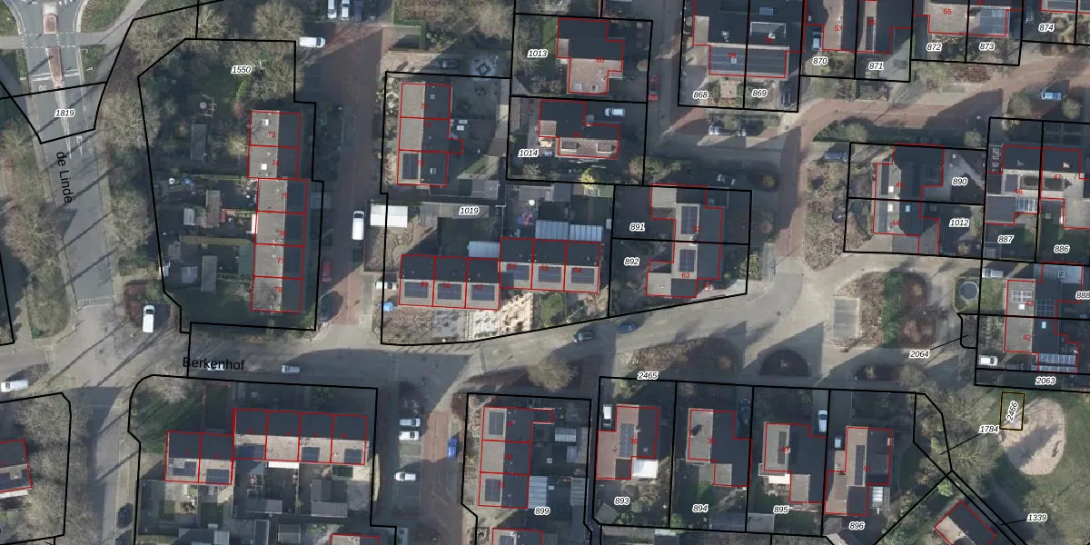 Het perceel waarop Berkenhof 65 staat heeft een oppervlakte van 1625 m². Dit is een zeer groot perceel. De perceeloppervlakte wordt geregistreerd door het Kadaster. Gedetailleerde informatie over de maten van dit perceel kunt u vinden in het rapport Kadastrale kaart met maatvoering van Berkenhof 65.