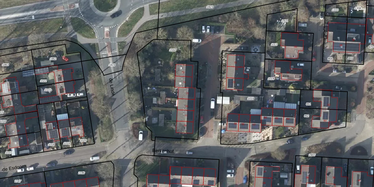 Het perceel waarop Berkenhof 75 staat heeft een oppervlakte van 1525 m². Dit is een zeer groot perceel. De perceeloppervlakte wordt geregistreerd door het Kadaster. Gedetailleerde informatie over de maten van dit perceel kunt u vinden in het rapport Kadastrale kaart met maatvoering van Berkenhof 75.