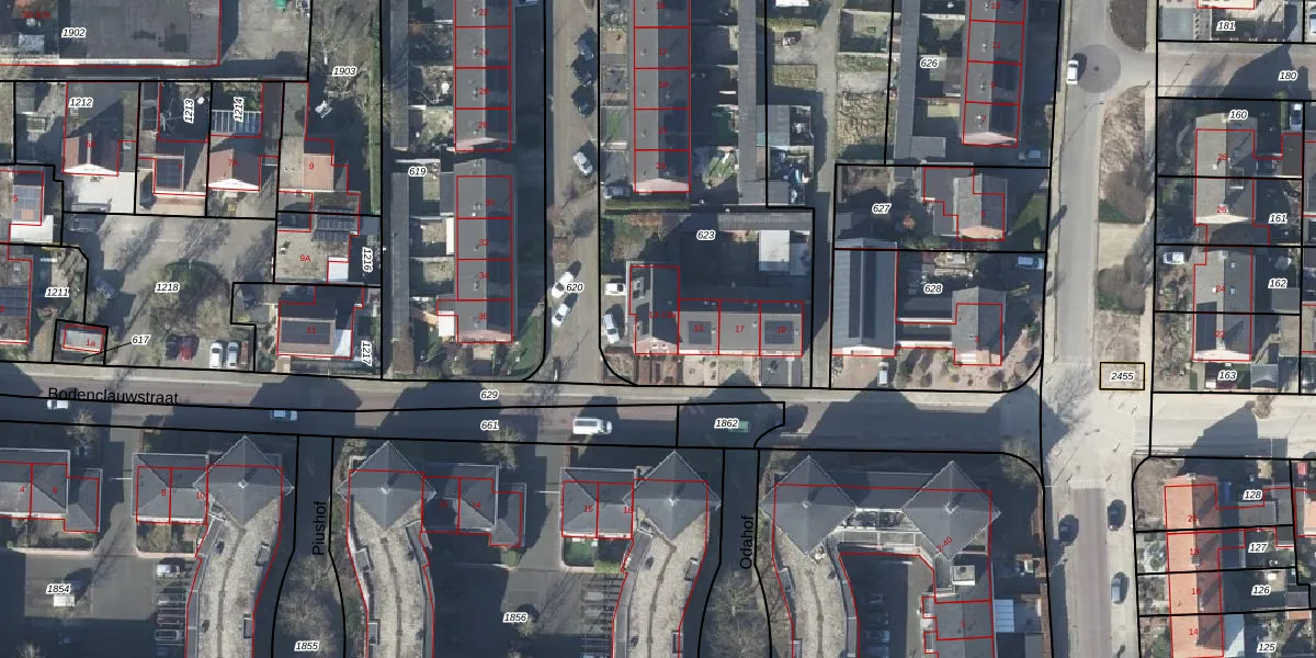 Het perceel waarop Bodenclauwstraat 13 staat heeft een oppervlakte van 1923 m². Dit is een zeer groot perceel. De perceeloppervlakte wordt geregistreerd door het Kadaster. Gedetailleerde informatie over de maten van dit perceel kunt u vinden in het rapport Kadastrale kaart met maatvoering van Bodenclauwstraat 13.