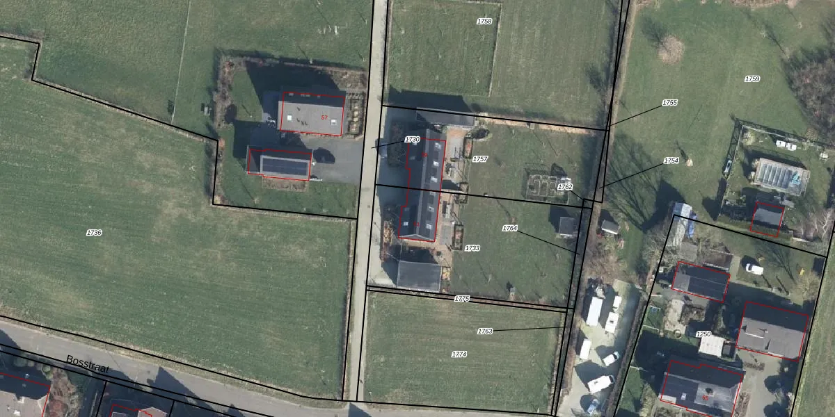 Bosstraat 61 is gelegen op kadastraal perceel DDM00O1733. Deze kadastrale aanduiding is uniek en wordt gebruikt door het Kadaster om eigendomsrechten en andere zakelijke rechten vast te leggen. Het perceel maakt onderdeel uit van de kadastrale gemeente Didam.