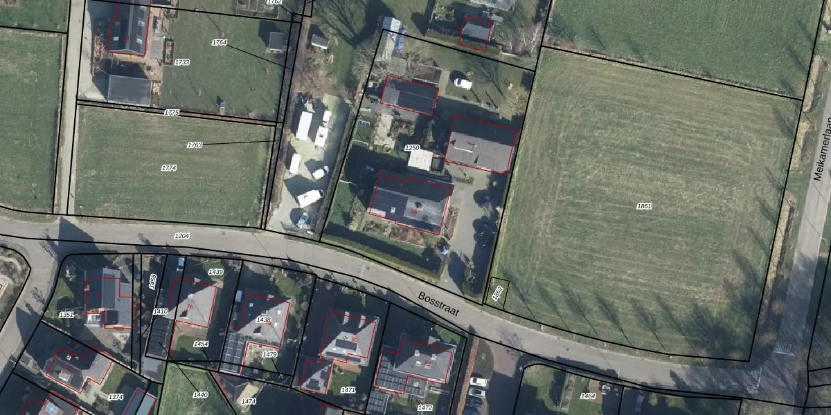Het perceel waarop Bosstraat 65 staat heeft een oppervlakte van 2200 m². Dit is een zeer groot perceel. De perceeloppervlakte wordt geregistreerd door het Kadaster. Gedetailleerde informatie over de maten van dit perceel kunt u vinden in het rapport Kadastrale kaart met maatvoering van Bosstraat 65.