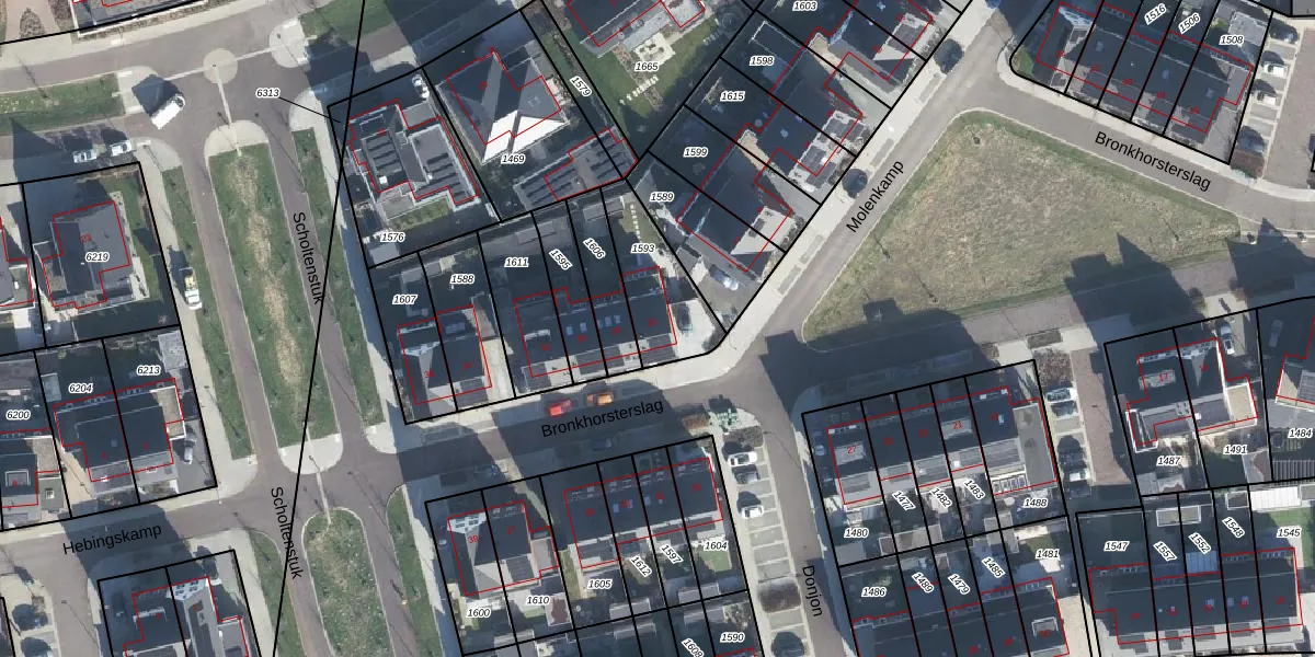 Bronkhorsterslag 26 is gelegen op kadastraal perceel DDM00N1593. Deze kadastrale aanduiding is uniek en wordt gebruikt door het Kadaster om eigendomsrechten en andere zakelijke rechten vast te leggen. Het perceel maakt onderdeel uit van de kadastrale gemeente Didam.