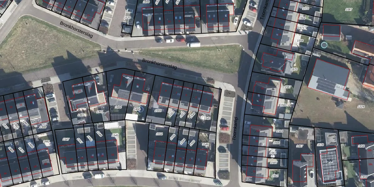 Bronkhorsterslag 5 is gelegen op kadastraal perceel DDM00N1551. Deze kadastrale aanduiding is uniek en wordt gebruikt door het Kadaster om eigendomsrechten en andere zakelijke rechten vast te leggen. Het perceel maakt onderdeel uit van de kadastrale gemeente Didam.