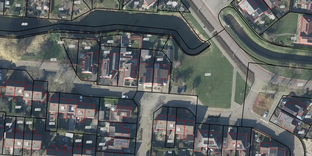 Het perceel waarop Bunder 35 staat heeft een oppervlakte van 275 m². Dit is een middelgroot perceel. De perceeloppervlakte wordt geregistreerd door het Kadaster. Gedetailleerde informatie over de maten van dit perceel kunt u vinden in het rapport Kadastrale kaart met maatvoering van Bunder 35.