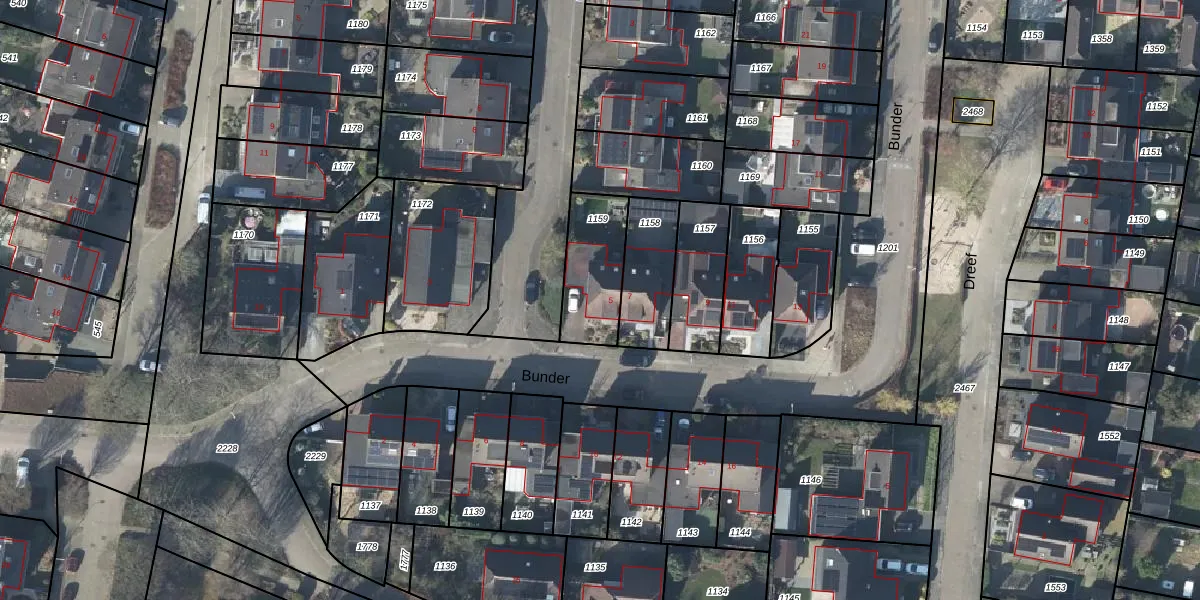 Het perceel waarop Bunder 5 staat heeft een oppervlakte van 245 m². Dit is een middelgroot perceel. De perceeloppervlakte wordt geregistreerd door het Kadaster. Gedetailleerde informatie over de maten van dit perceel kunt u vinden in het rapport Kadastrale kaart met maatvoering van Bunder 5.