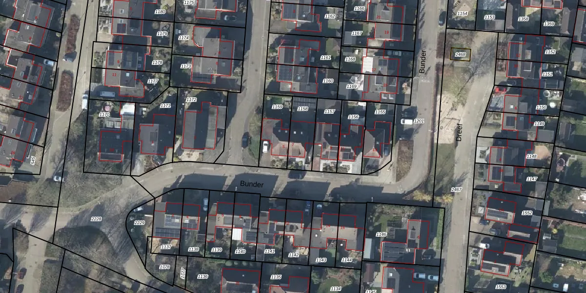 Gebruik de zoekbalk of klik op een perceel voor informatie over de adressen binnen dit perceel.