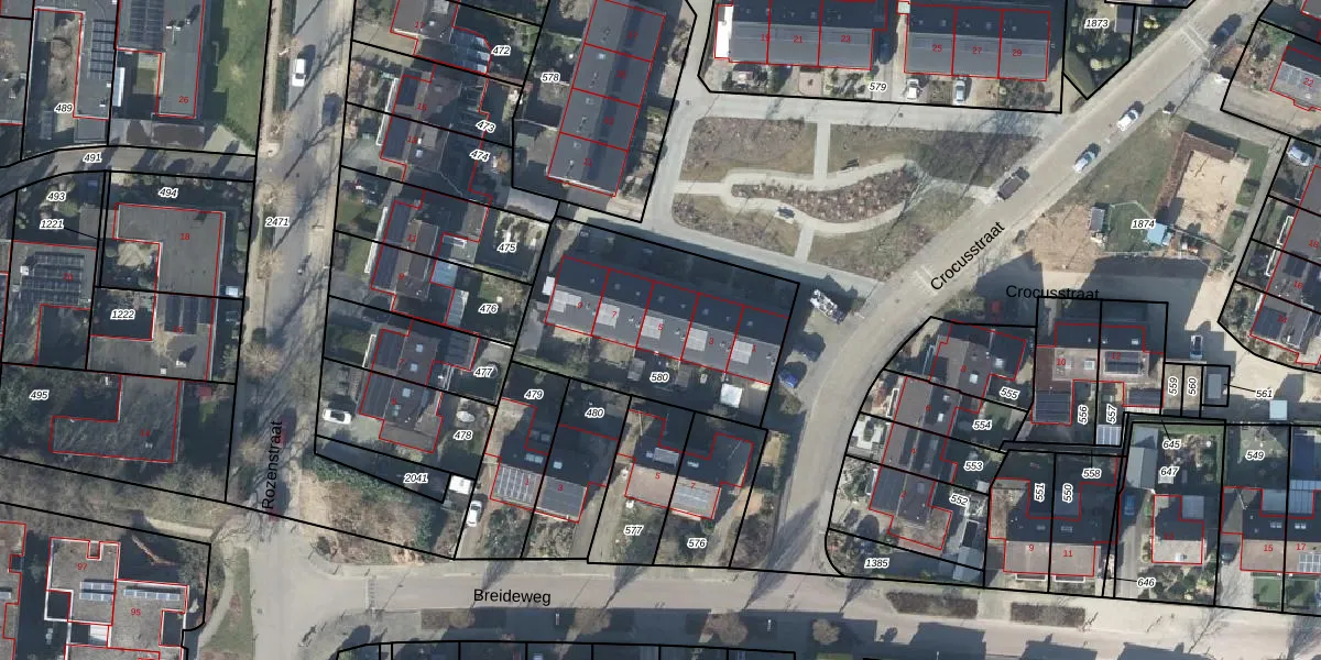Het perceel waarop Crocusstraat 5 staat heeft een oppervlakte van 868 m². Dit is een groot perceel. De perceeloppervlakte wordt geregistreerd door het Kadaster. Gedetailleerde informatie over de maten van dit perceel kunt u vinden in het rapport Kadastrale kaart met maatvoering van Crocusstraat 5.