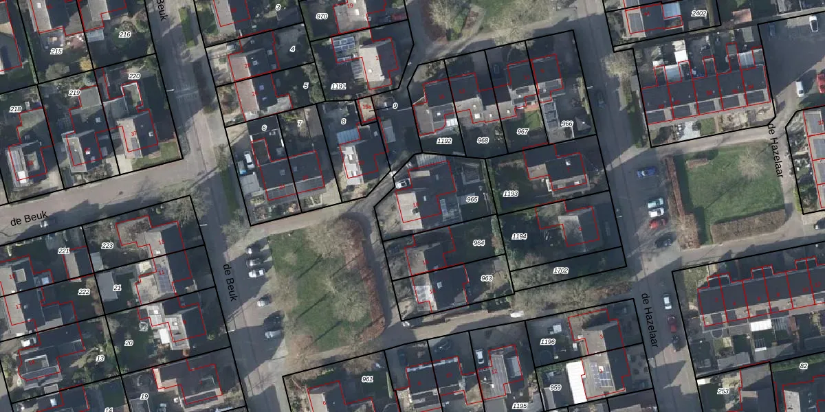de Beuk 18 is gelegen op kadastraal perceel DDM00M965. Deze kadastrale aanduiding is uniek en wordt gebruikt door het Kadaster om eigendomsrechten en andere zakelijke rechten vast te leggen. Het perceel maakt onderdeel uit van de kadastrale gemeente Didam.