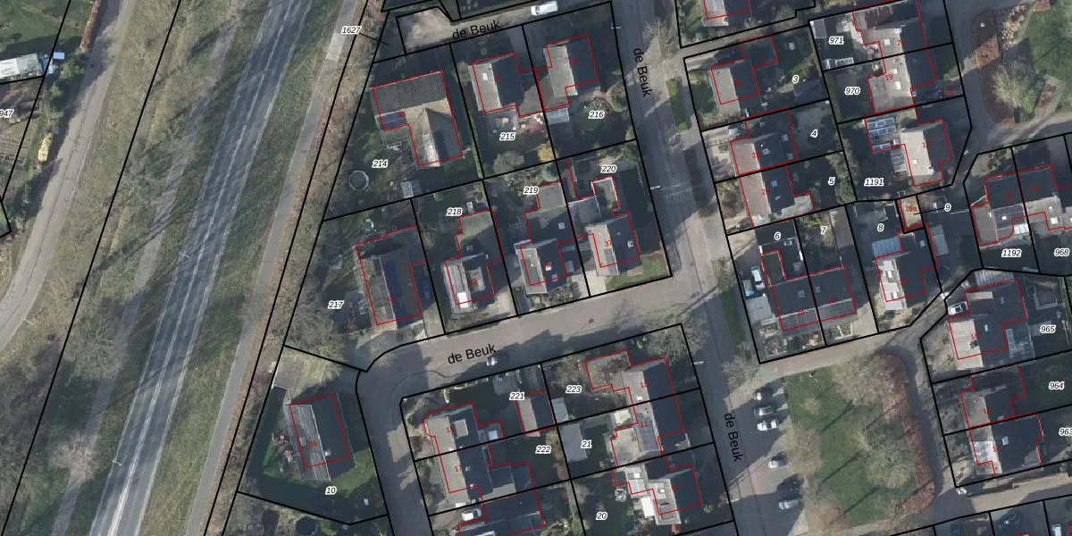 de Beuk 35 is gelegen op kadastraal perceel DDM00M219. Deze kadastrale aanduiding is uniek en wordt gebruikt door het Kadaster om eigendomsrechten en andere zakelijke rechten vast te leggen. Het perceel maakt onderdeel uit van de kadastrale gemeente Didam.