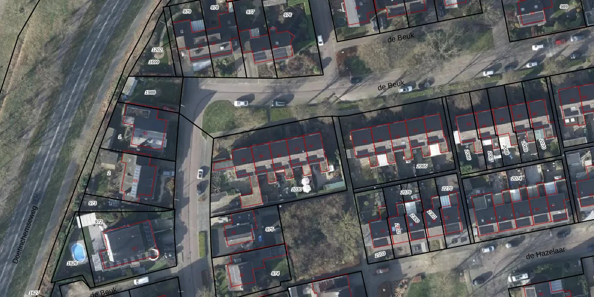 de Beuk 42 is gelegen op kadastraal perceel DDM00M1030. Deze kadastrale aanduiding is uniek en wordt gebruikt door het Kadaster om eigendomsrechten en andere zakelijke rechten vast te leggen. Het perceel maakt onderdeel uit van de kadastrale gemeente Didam.