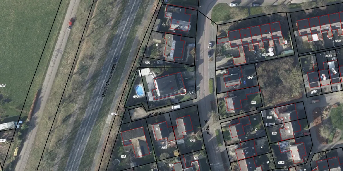 de Beuk 47 is gelegen op kadastraal perceel DDM00M972. Deze kadastrale aanduiding is uniek en wordt gebruikt door het Kadaster om eigendomsrechten en andere zakelijke rechten vast te leggen. Het perceel maakt onderdeel uit van de kadastrale gemeente Didam.