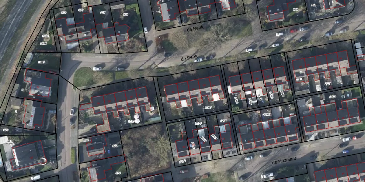 Het perceel waarop de Beuk 48 staat heeft een oppervlakte van 875 m². Dit is een groot perceel. De perceeloppervlakte wordt geregistreerd door het Kadaster. Gedetailleerde informatie over de maten van dit perceel kunt u vinden in het rapport Kadastrale kaart met maatvoering van de Beuk 48.