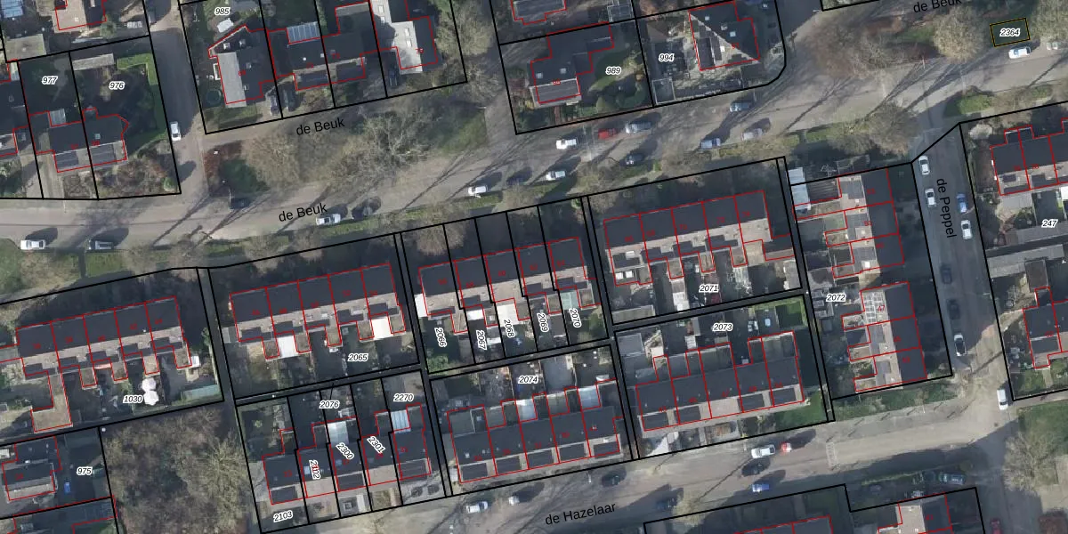 Gebruik de zoekbalk of klik op een perceel voor informatie over de adressen binnen dit perceel.