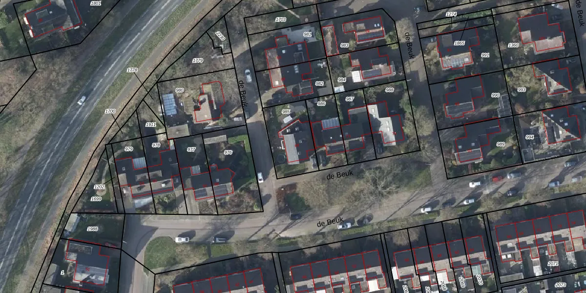 Gebruik de zoekbalk of klik op een perceel voor informatie over de adressen binnen dit perceel.