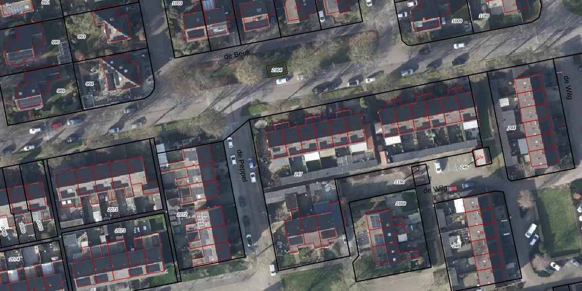 Het perceel waarop de Beuk 78 staat heeft een oppervlakte van 2642 m². Dit is een zeer groot perceel. De perceeloppervlakte wordt geregistreerd door het Kadaster. Gedetailleerde informatie over de maten van dit perceel kunt u vinden in het rapport Kadastrale kaart met maatvoering van de Beuk 78.