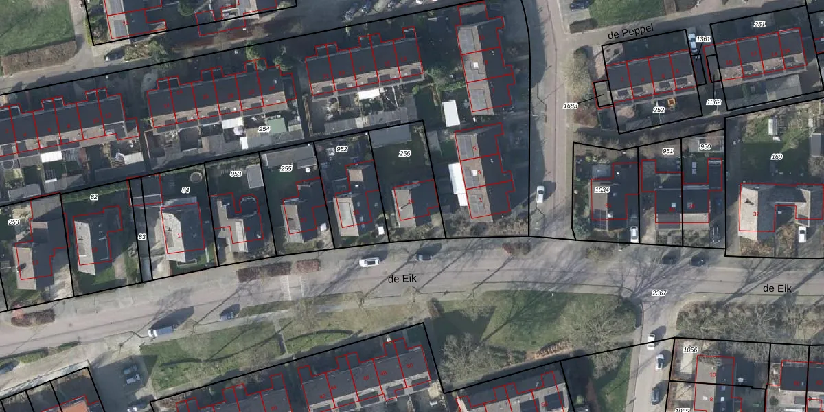 Gebruik de zoekbalk of klik op een perceel voor informatie over de adressen binnen dit perceel.