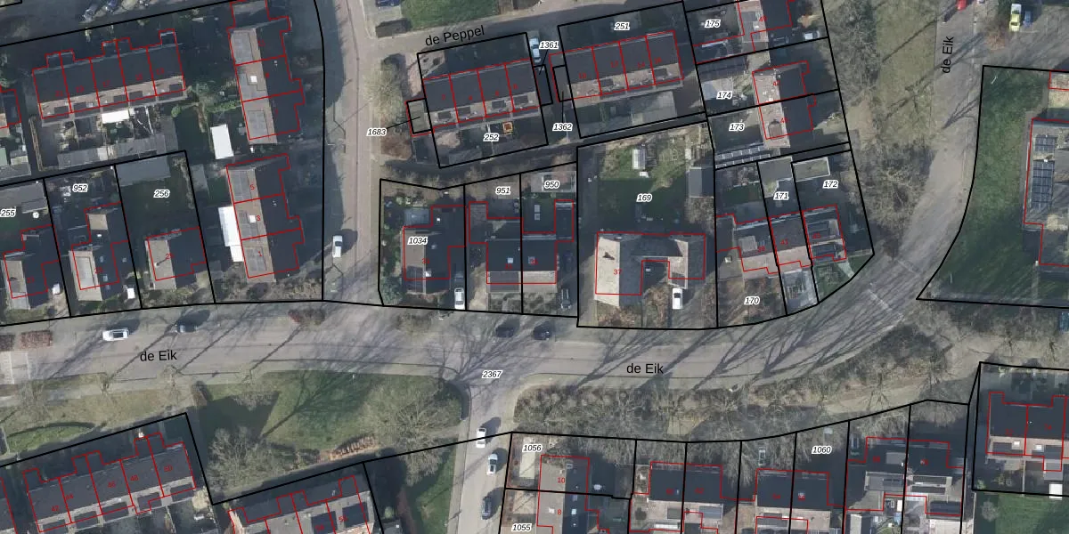 de Eik 35 is gelegen op kadastraal perceel DDM00M950. Deze kadastrale aanduiding is uniek en wordt gebruikt door het Kadaster om eigendomsrechten en andere zakelijke rechten vast te leggen. Het perceel maakt onderdeel uit van de kadastrale gemeente Didam.