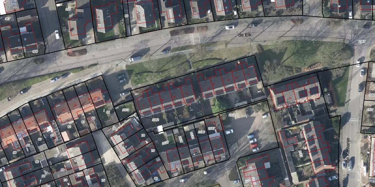 Het perceel waarop de Eik 40 staat heeft een oppervlakte van 6015 m². Dit is een zeer groot perceel. De perceeloppervlakte wordt geregistreerd door het Kadaster. Gedetailleerde informatie over de maten van dit perceel kunt u vinden in het rapport Kadastrale kaart met maatvoering van de Eik 40.