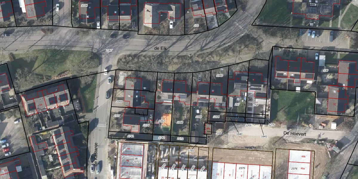 Het perceel waarop de Eik 62 staat heeft een oppervlakte van 358 m². Dit is een groot perceel. De perceeloppervlakte wordt geregistreerd door het Kadaster. Gedetailleerde informatie over de maten van dit perceel kunt u vinden in het rapport Kadastrale kaart met maatvoering van de Eik 62.